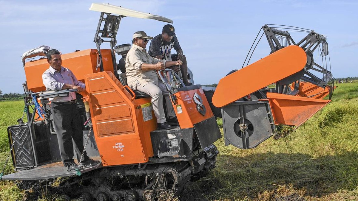 FOTO: Blusukan Prabowo ke Food Estate Merauke, Jajal Panen Padi Modern