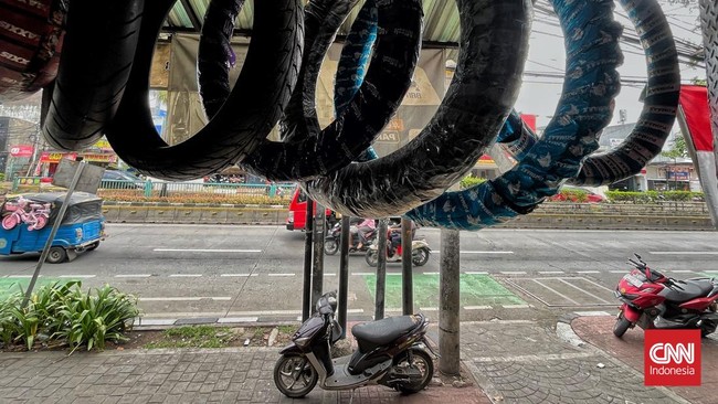 -- Penjualan ban dan aksesoris kendaraan roda dua di kawasan Otista, Jakarta Timur meredup. Pedagang menduga hal itu dipicu belanja online.
