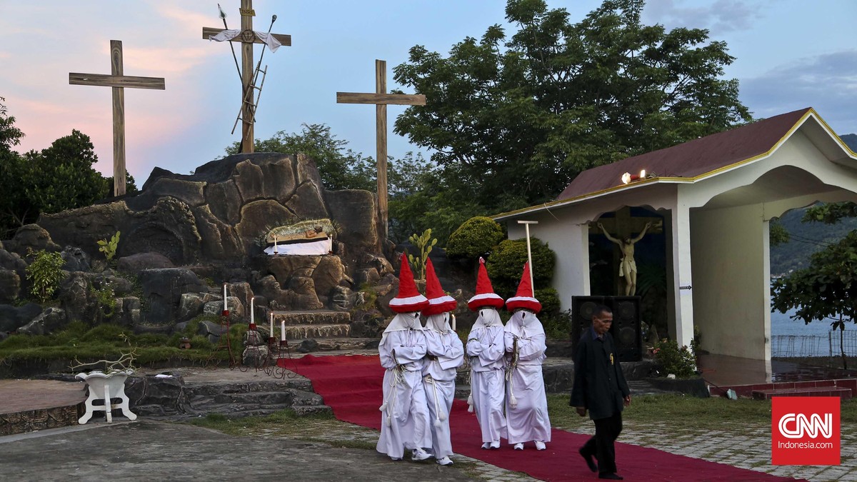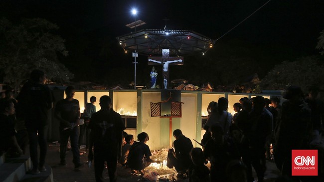 -- Umat Katolik di di Larantuka, Fores Timur, NTT, menggelar arak-arakan pada Malam Jumat Agung (25/3) dalam suasana kudus.