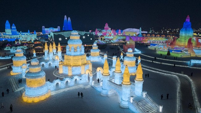 -- Sebelum pandemi virus Corona melanda dunia, China sempat menggelar Festival Es dan Salju Harbin yang meriah.