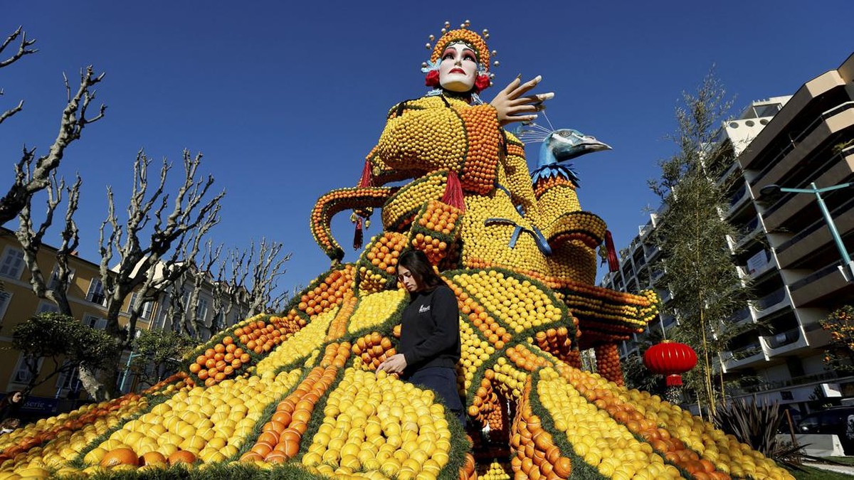 -- Sederet patung yang terbuat dari buah lemon dan jeruk dipamerkan dalam Menton Lemon Festival ke-88 di Menton, Prancis.