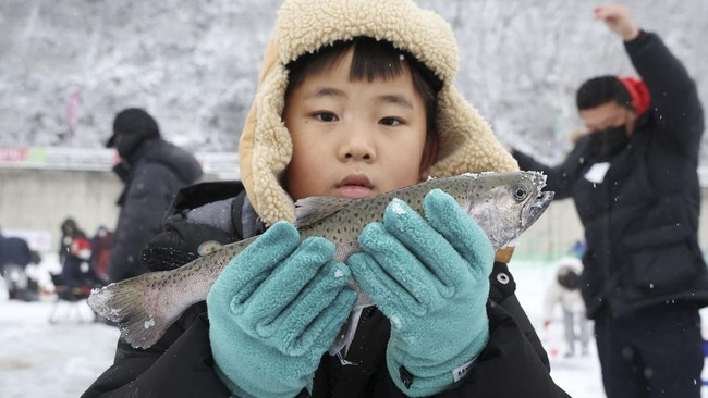 -- Setelah jeda tiga tahun karena pandemi, festival memancing es tahunan Korea Selatan kembali tampil mengesankan pada Sabtu (6/1).