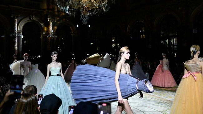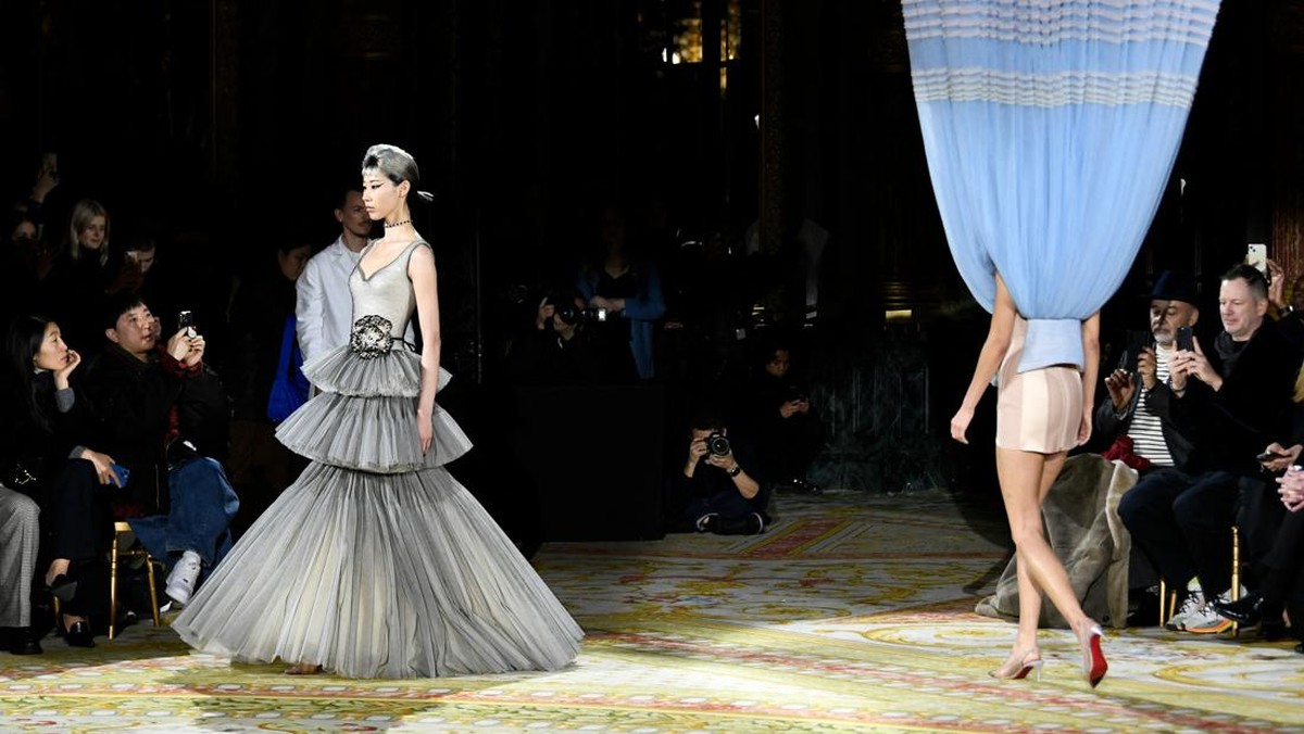 Viktor dan Rolf menerjemahkan keadaan dunia yang kacau balau, terbalik, namun tetap berdampingan menjadi koleksi haute couture yang fantastis, berani, jenaka.