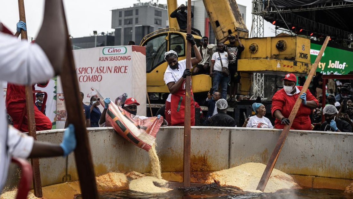 Warga Nigeria memecahkan rekor memasak hidangan nasi jollof terbesar di dunia pada Jumat (12/9). Ribuan orang berkumpul di Lagos untuk menyaksikannya.
