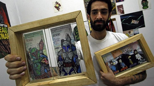 -- Mata uang Venezuela sudah kehilangan nilai tukar sehingga masyarakat lebih memilih untuk membuatnya jadi barang kesenian.