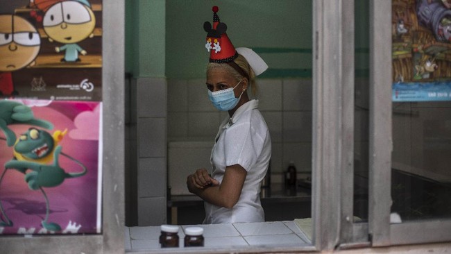 Jakarta, Parlando Indonesia -- Sebagai hiburan, badut dan 'Minnie Mouse' hadir dalam program vaksinasi Covid-19 pertama untuk anak usia 2 tahun di Kuba.