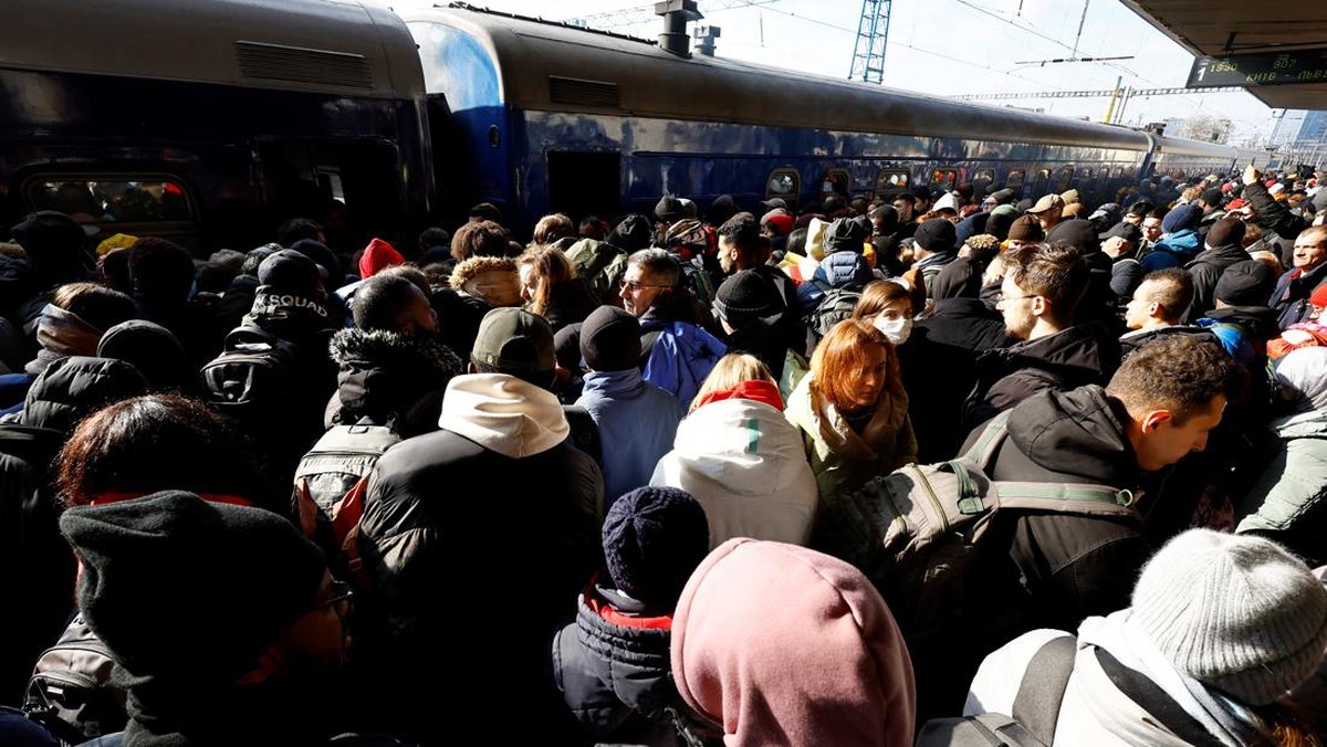 -- Ribuan warga Ukraina berdesakan di Stasiun Kiev demi mengungsi dari serangan Rusia. Berikut gambarannya.