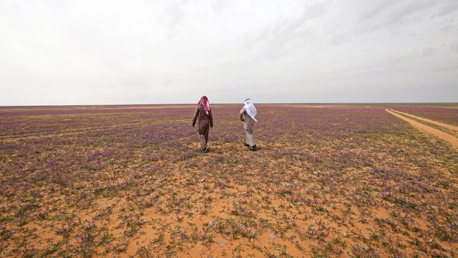 FOTO: 'Permadani Ungu' Semerbak Mewangi di Gurun Pasir Arab Saudi