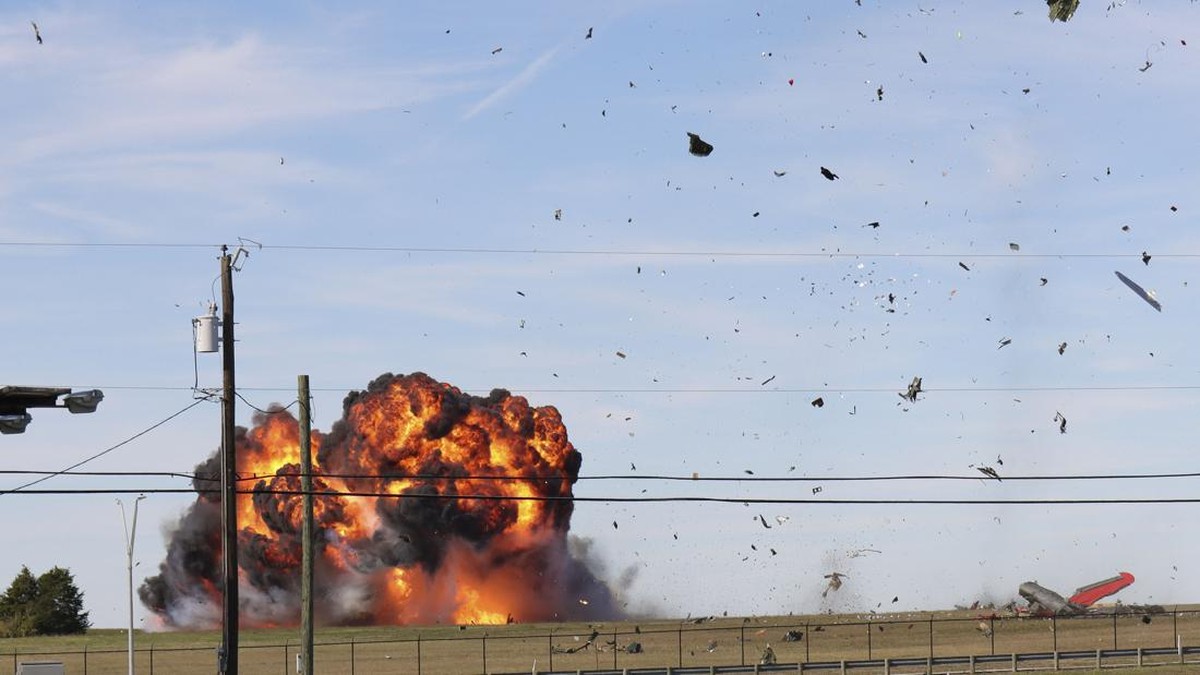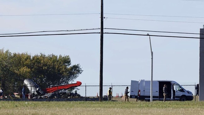 -- Dua pesawat militer kuno tabrakan pada momen pameran Dallas Air Show di Dallas, Texas, AS.