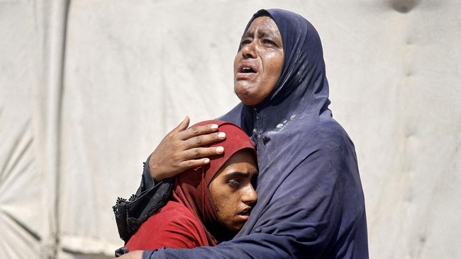 -- Ribuan warga Palestina berpindah tempat setelah pasukan Israel melancarkan serangan di Khan Younis, selatan Jalur Gaza.