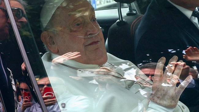 Paus Fransiskus muncul ke publik menyapa jemaat usai lebih dari satu bulan dirawat di rumah sakit di Roma sejak 14 Februari.