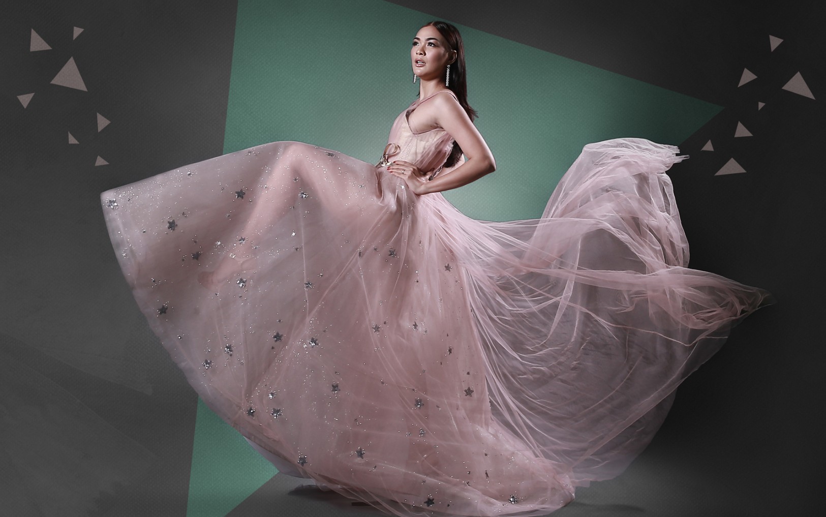 Pilihan akan gaun dengan rok mengembang menampilkan sisi feminin, dan bergaya klasik ala seorang princess. Warna pink atau dusty pink mempertegas tampilan diikuti dengan riasan natural dan anting panjang sebagai pelengkap. Motif bintang juga kembali jadi tren seperti halnya stripes atau garis.