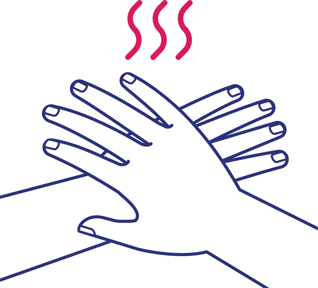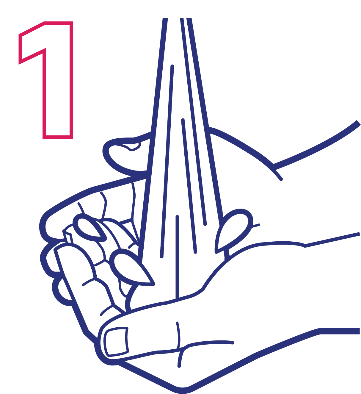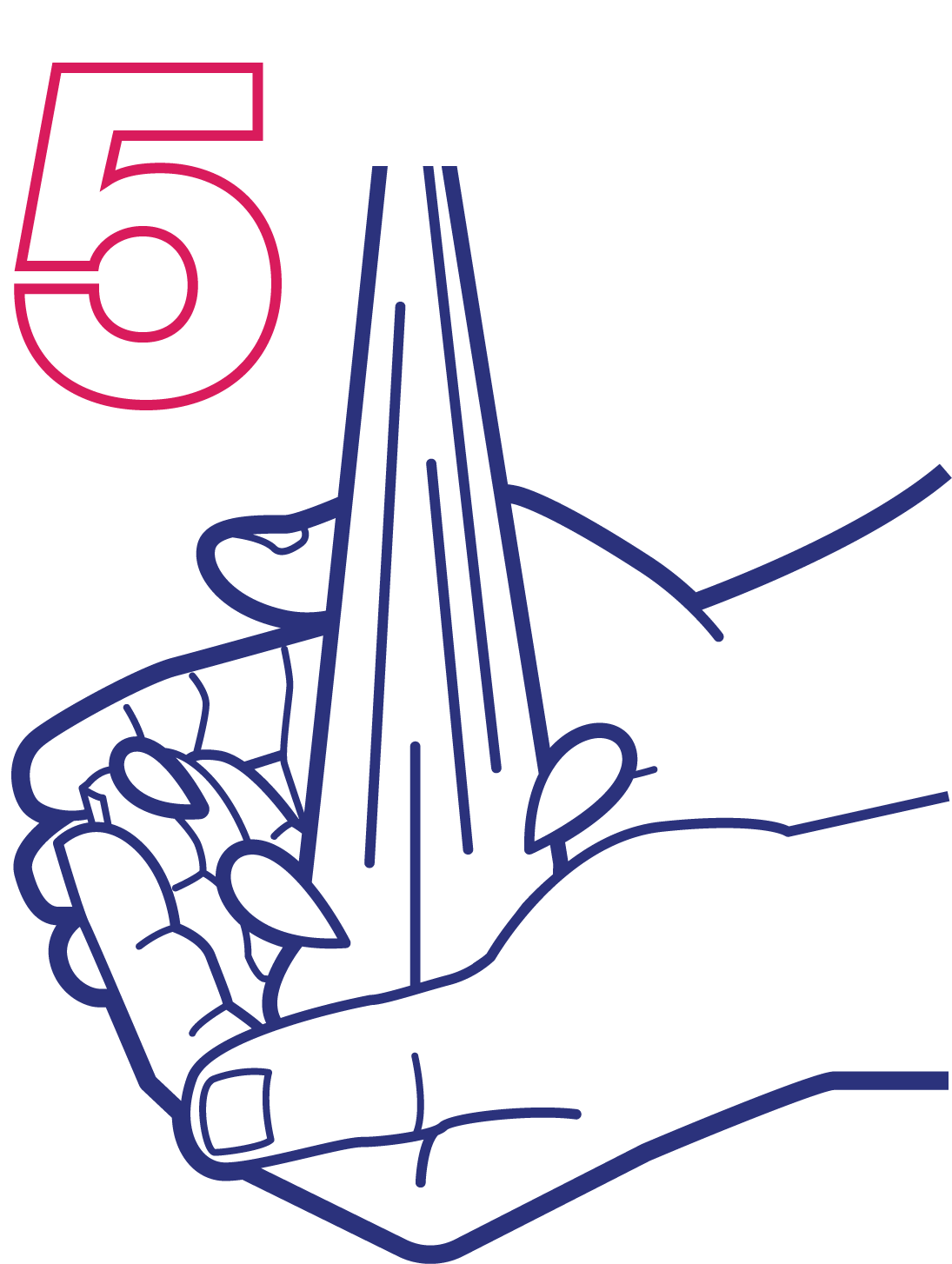 Gosok telapak tangan, punggung tangan, dan sela-sela jari.