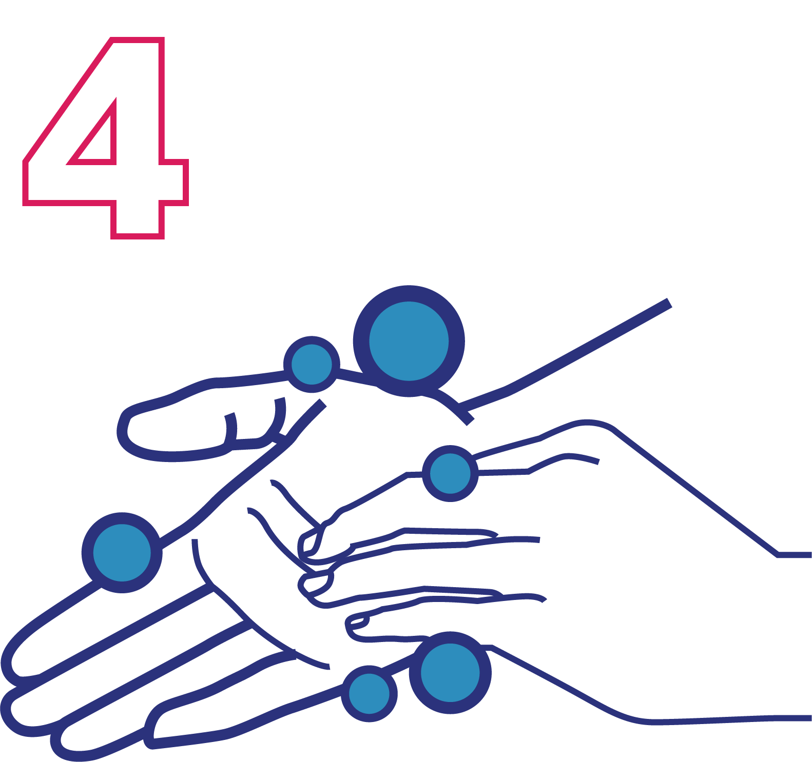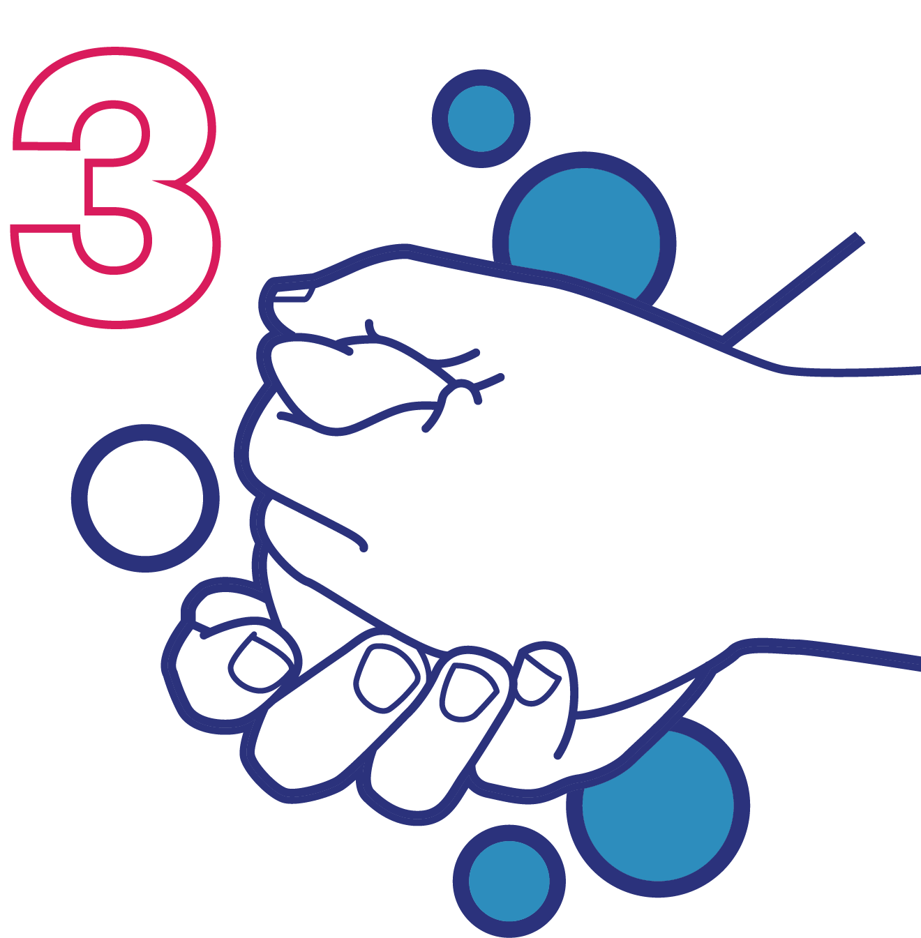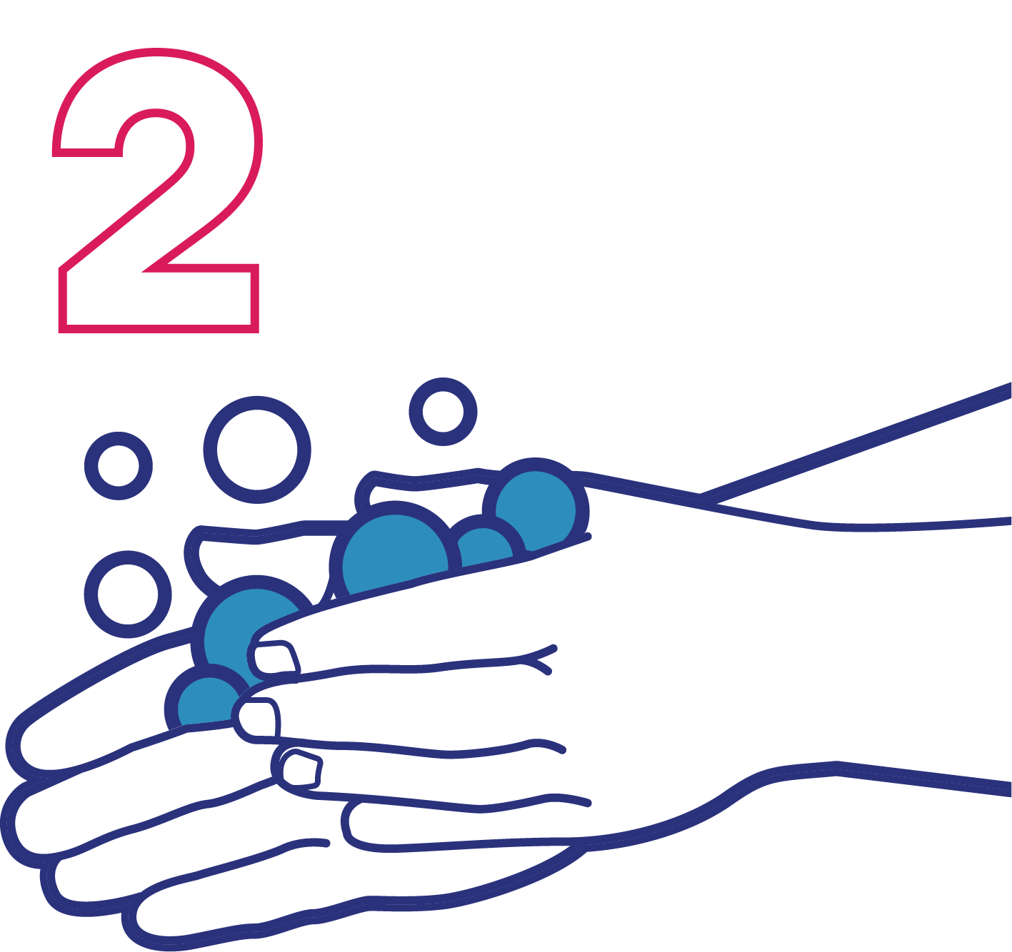 Gosok telapak tangan, punggung tangan, dan sela-sela jari.
