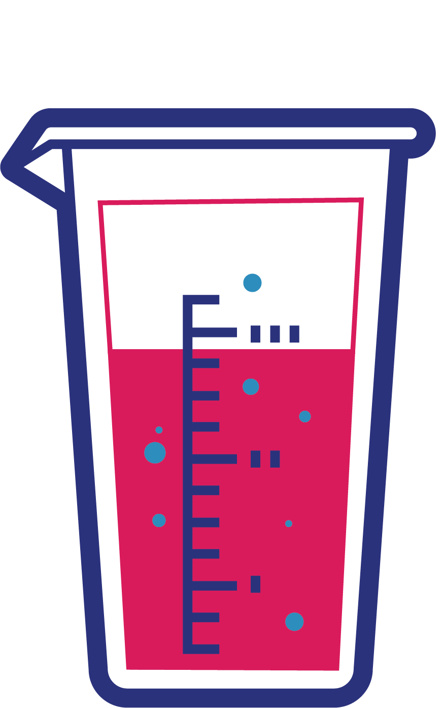 Tambahkan air suling/air yang telah didihkan dan didinginkan hingga wadah ukur penuh.