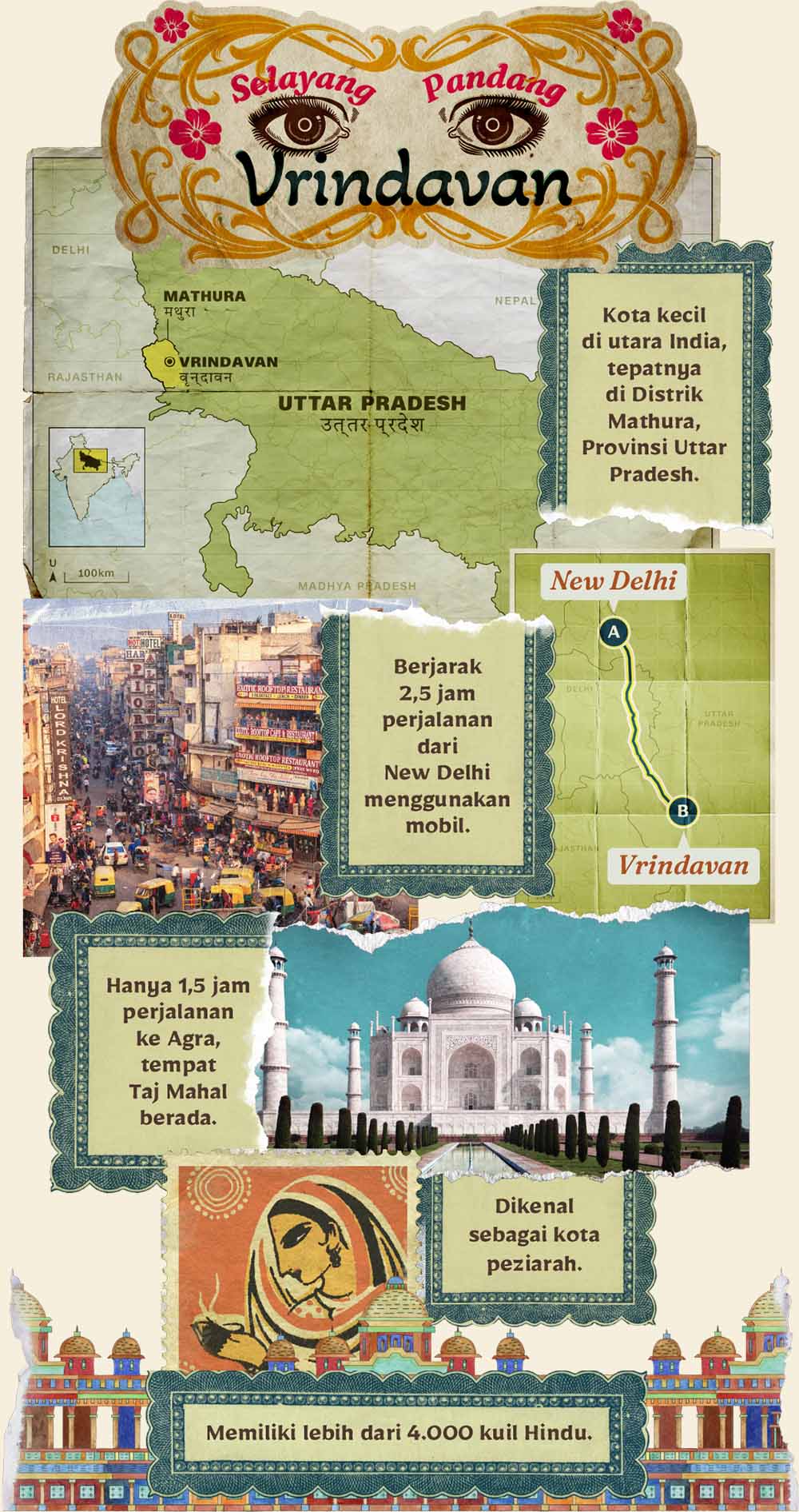 Kali ini saya ingin melihat secara langsung perayaan festival tahunan terbesar di India, yaitu festival Holi. Festival menyambut berakhirnya musim dingin dan datangnya musim semi di Vrindravan, kota kecil di negara bagian Uttar Pradesh yang berjarak 170 kilometer dari New Delhi.