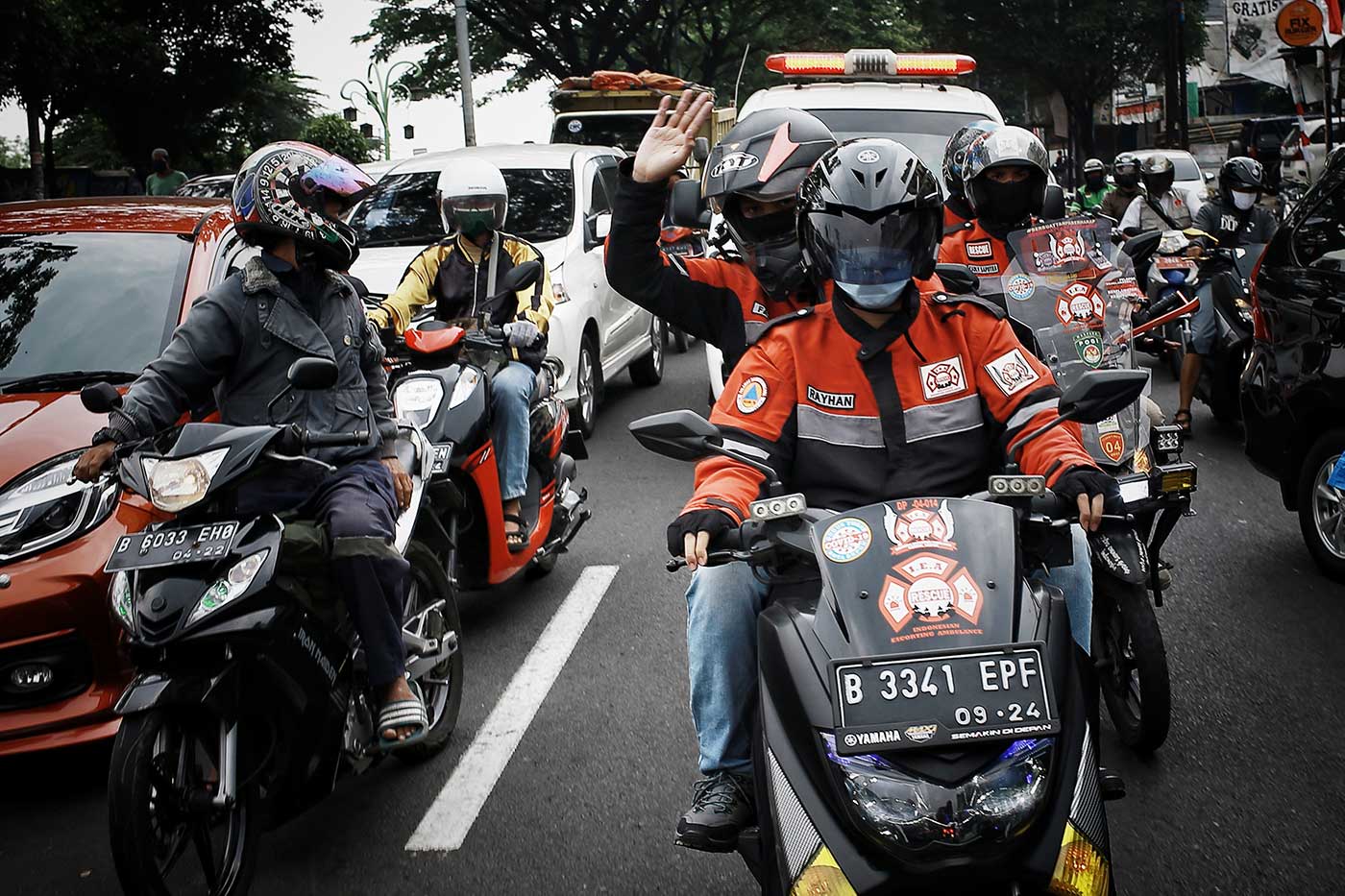 Mereka bukan tenaga kesehatan, tapi punya peran penting dalam kelancaran tugas tim medis. Mengawal ambulans agar tak terjebak kemacetan.