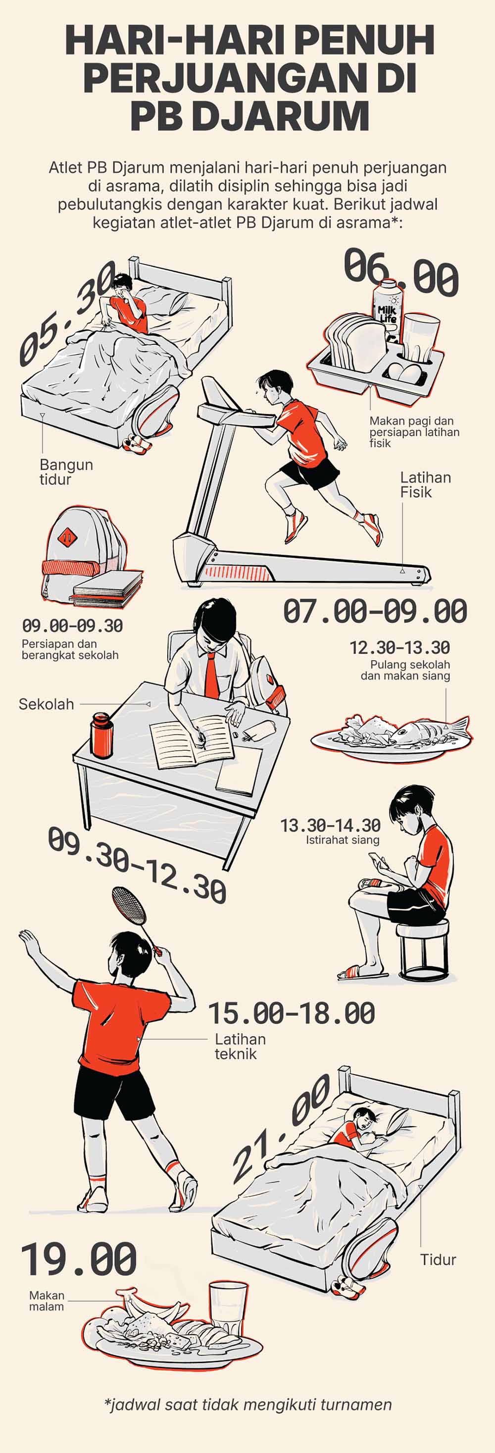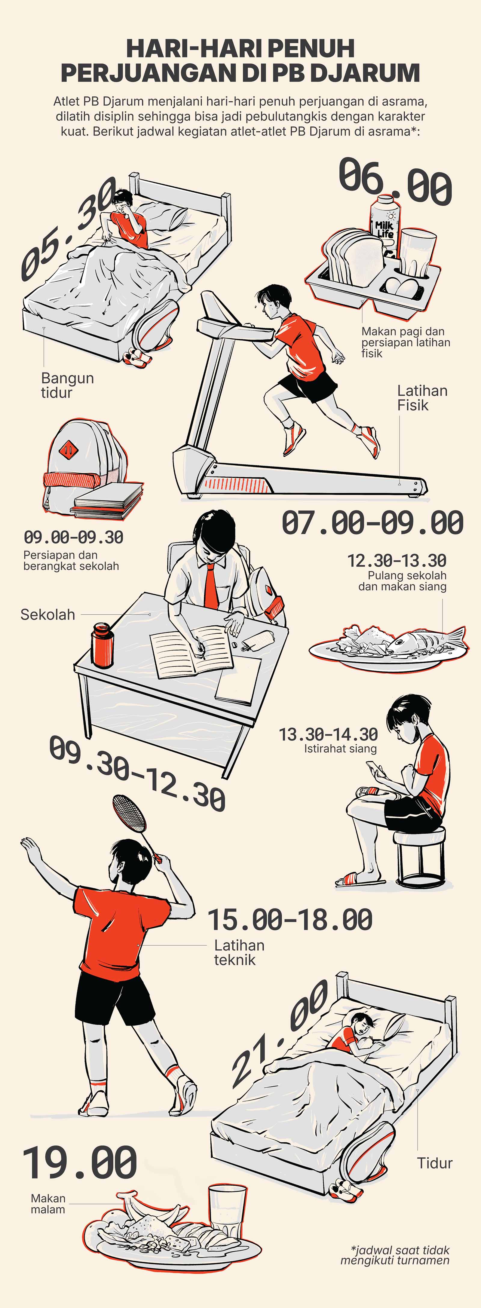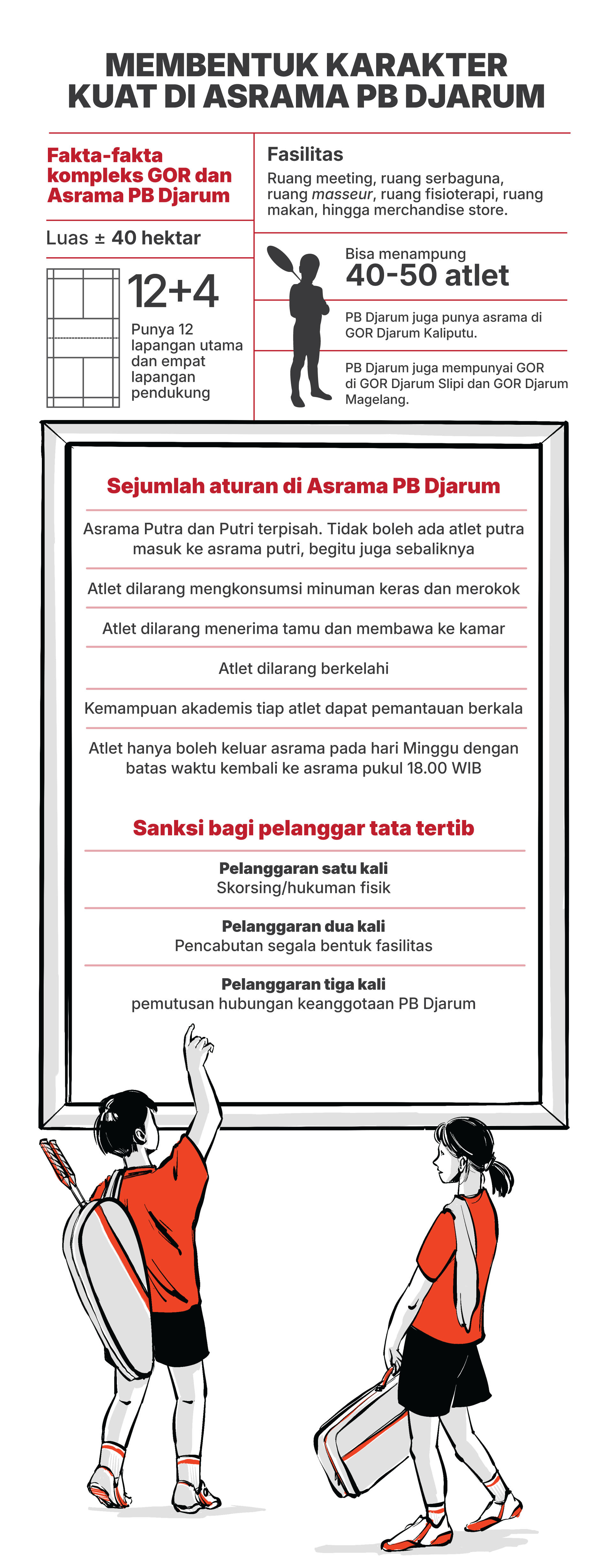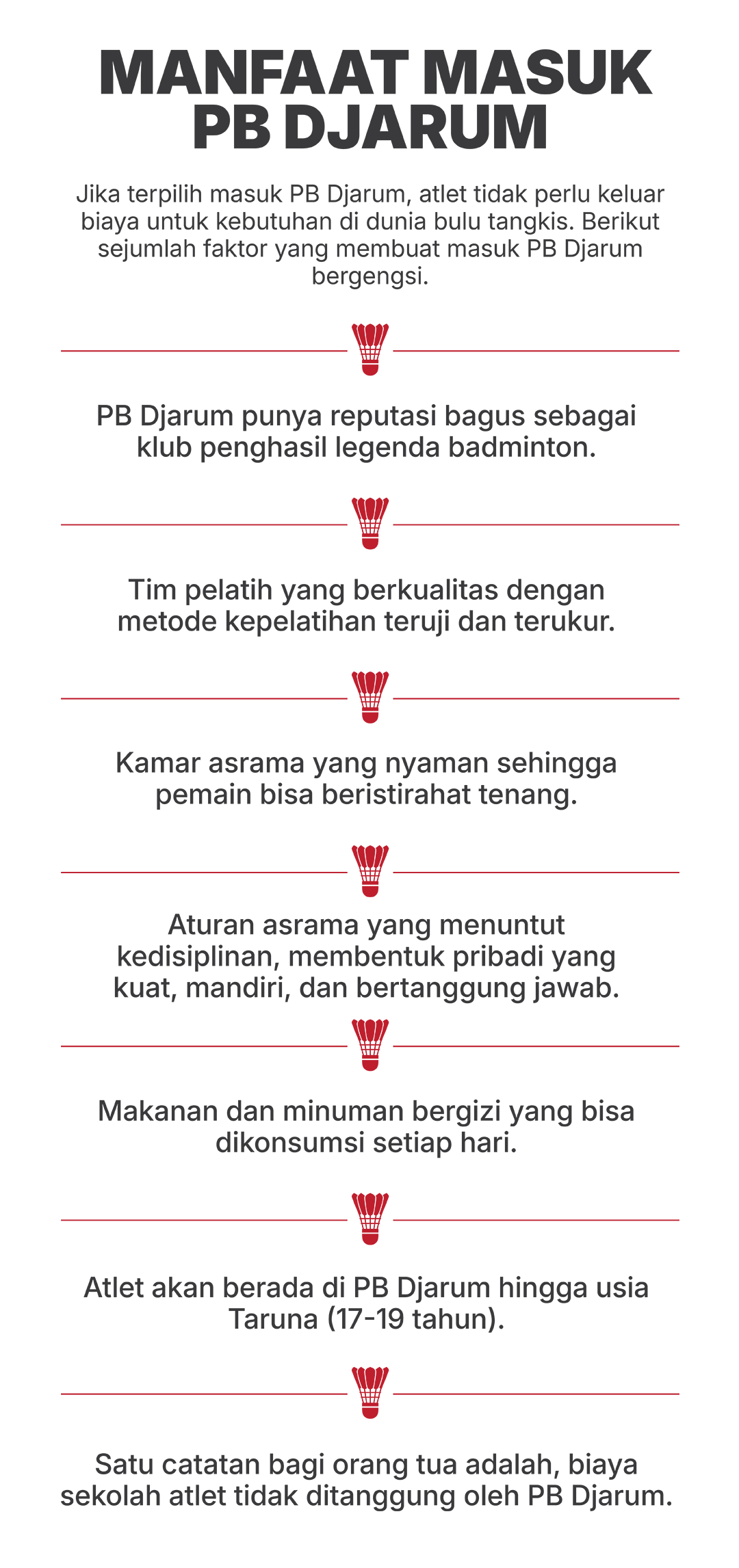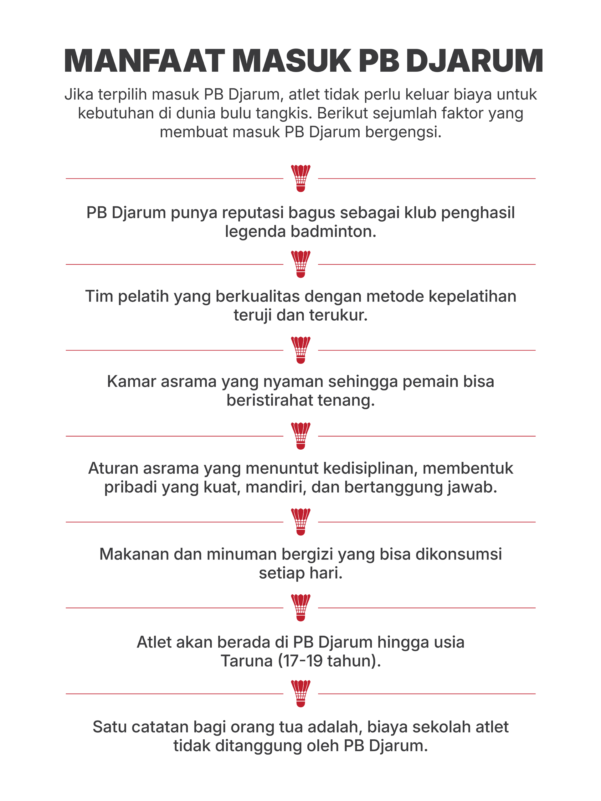 "Di PB Djarum, semua fasilitas terjamin. Latihan bagus, asrama bagus. Seluruh Indonesia juga tahu, bila bicara bulu tangkis, PB Djarum itu bagus," kata Ajui.