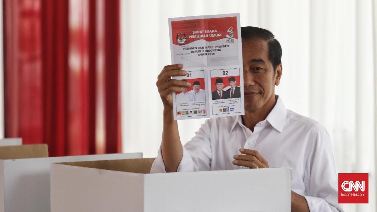 -- Momen kala paslon 01 Joko Widodo-Ma'ruf Amin dan paslon 02 Prabowo Subianto-Sandiaga Uno masuk bilik suara dan menyelesaikan hak pilihnya.