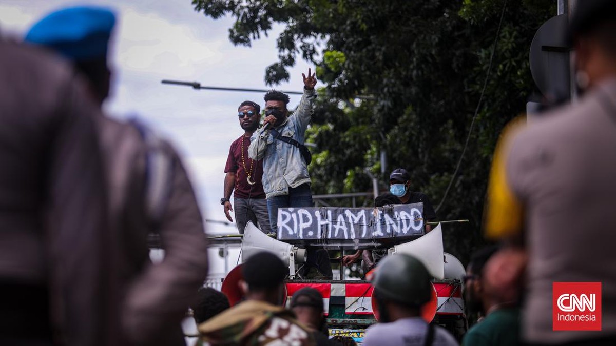 Massa aksi aktivis Papua berunjuk rasa di Makostrad, Jakarta, imbas tindakan prajurit TNI yang menganiaya anak sekolah dasar dengan tuduhan mencuri senjata.