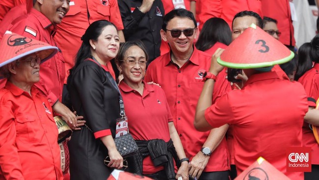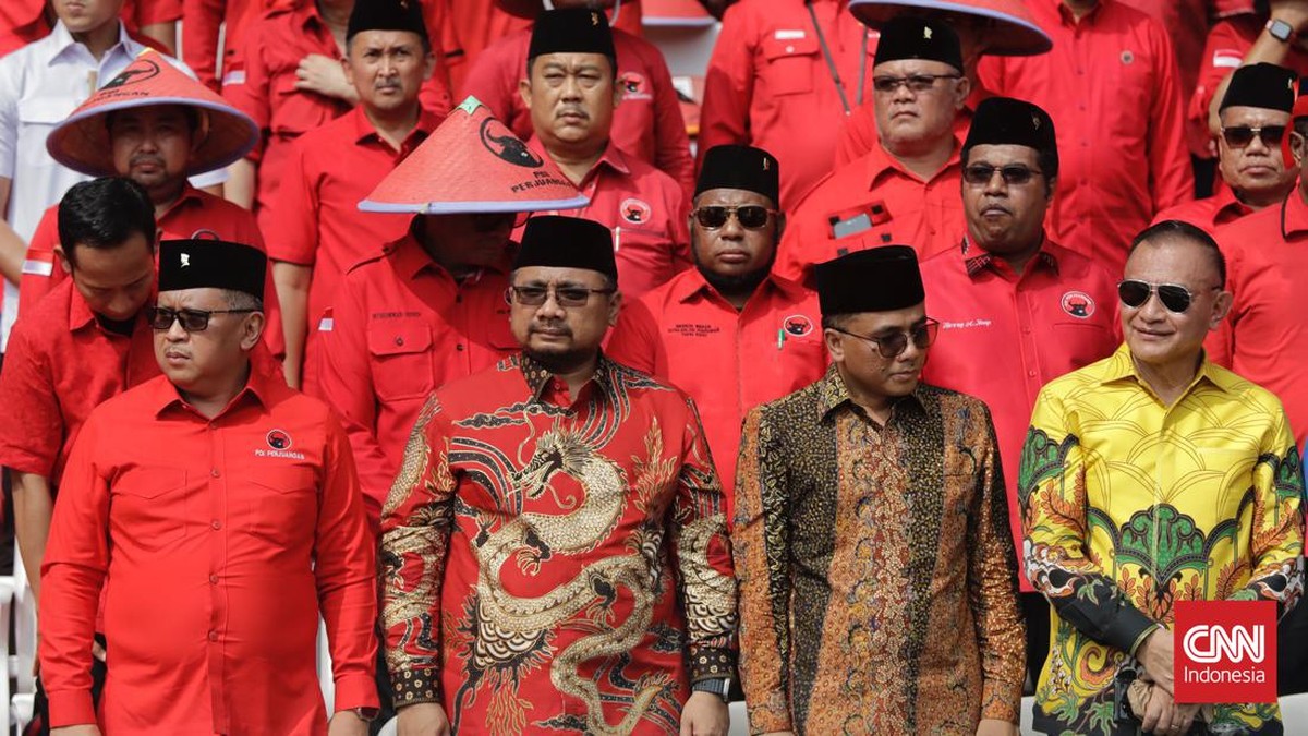 Sejumlah elite partai politik hingga menteri Kabinet Indonesia Maju menghadiri puncak peringatan Bulan Bung Karno di Stadion Utama GBK, Senayan, Sabtu (24/6).
