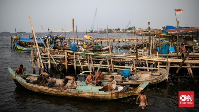 -- Tanggul laut Kalibaru, Cilincing, Jakarta Utara, ramai dimanfaatkan warga setempat untuk bermain dan bersantai.
