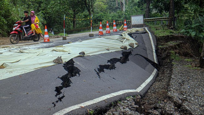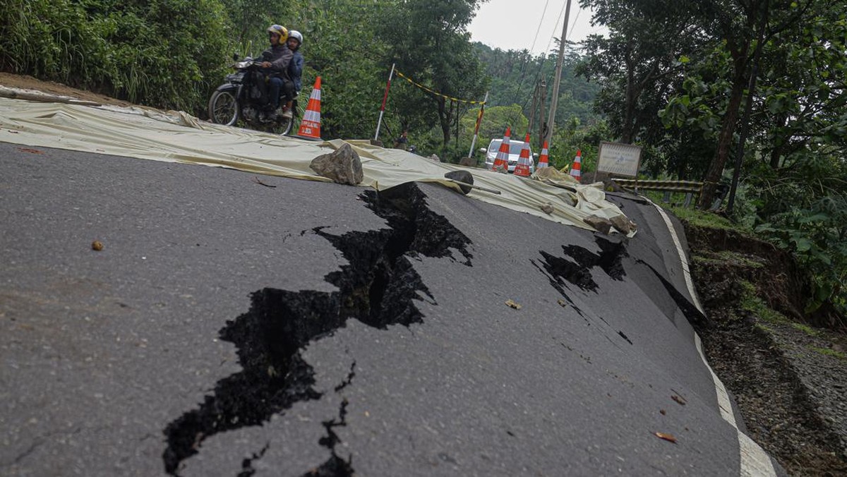 FOTO: Penampakan Jalan Pelabuhan Ratu-Sukabumi Putus Akibat Longsor