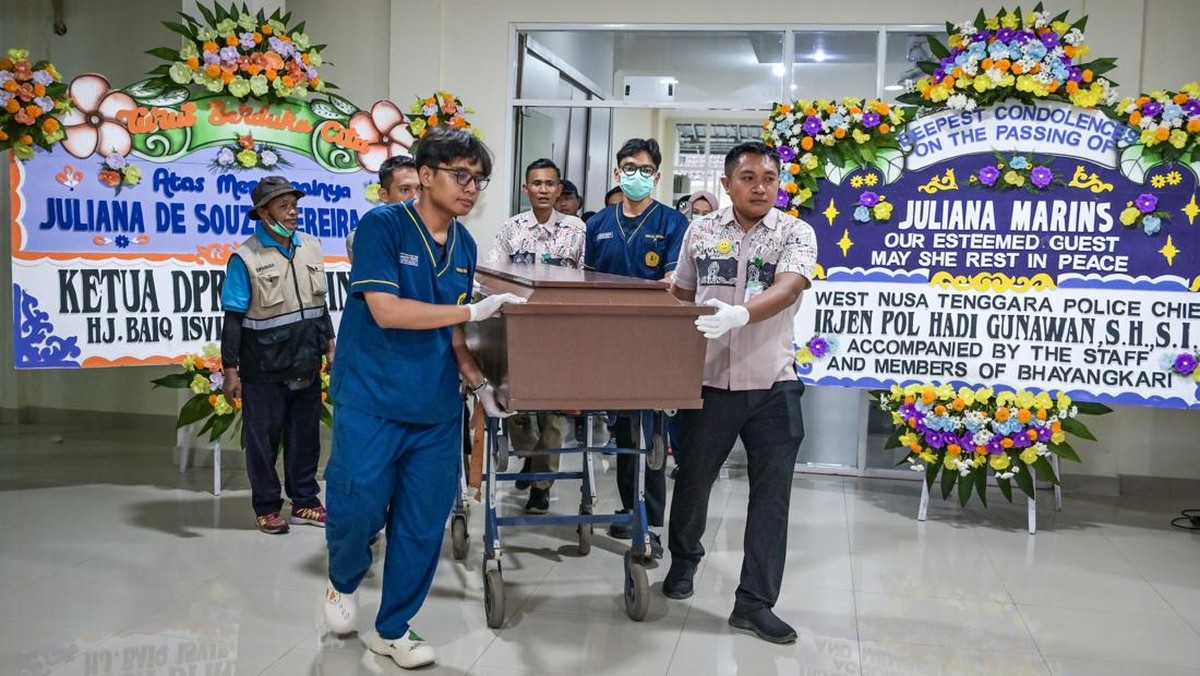 -- Pihak Rumah Sakit Bhayangkara Mataram, Nusa Tenggara Barat (NTB), telah memberangkatkan jenazah pendaki asal Brasil, Juliana Marins, ke Bali.
