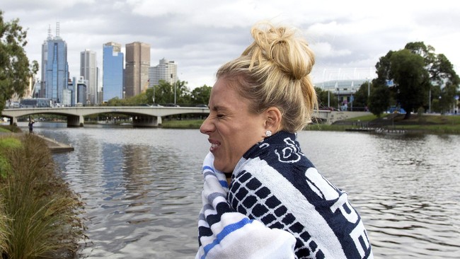 -- Angelique Kerber merayakan kesuksesannya menyabet grand slam pertama dengan menceburkan diri ke Sungai Yarra di kota Melbourne.
