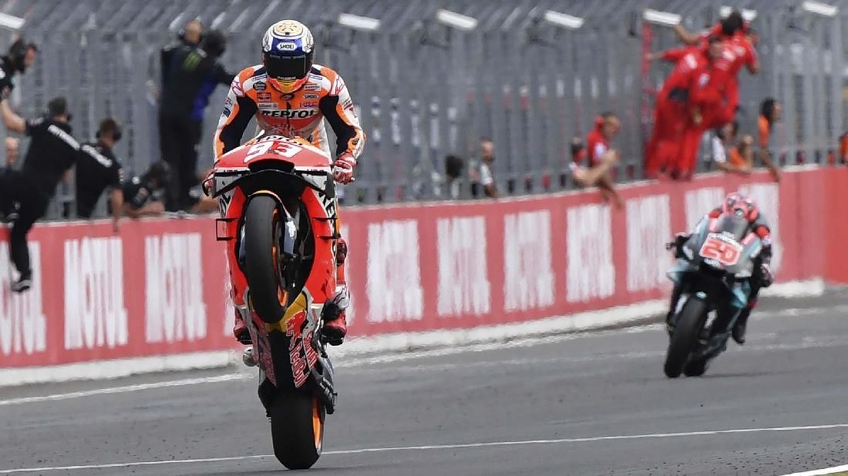 -- Marc Marquez meraih kemenangan mudah atas Fabio Quartararo pada balapan MotoGP Jepang 2019 di Sirkuit Motegi.