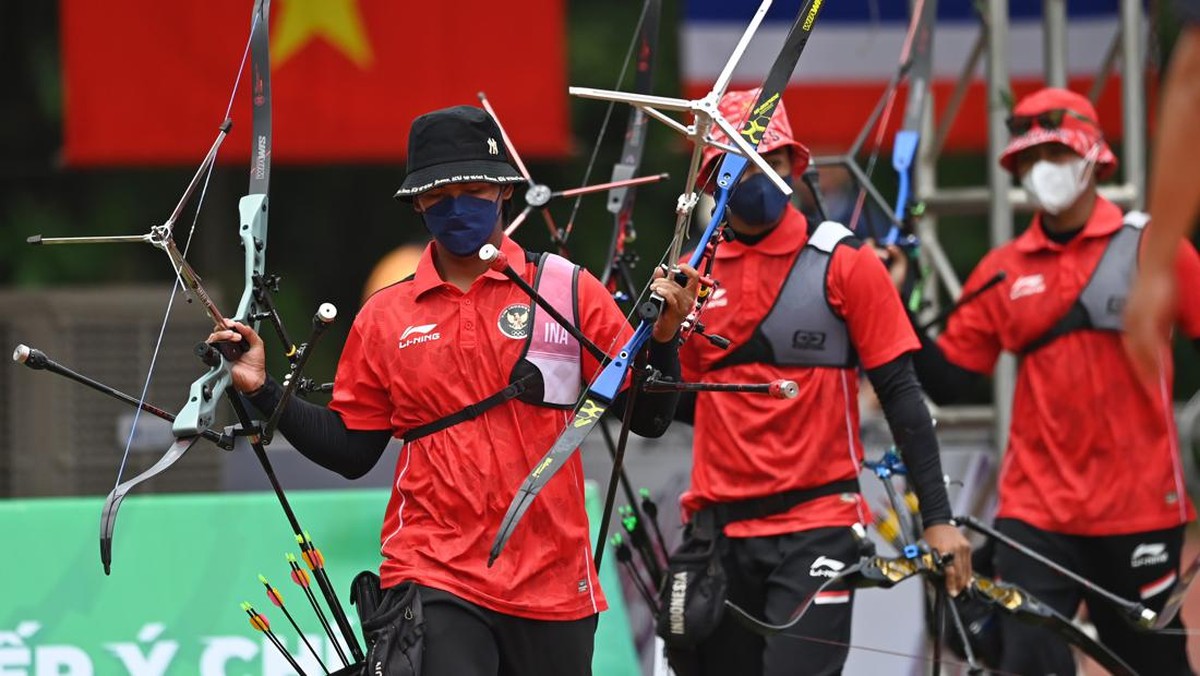 -- Cabang olahraga panahan Indonesia panen empat medali emas di SEA Games 2021 (2022) di Vietnam, Rabu (18/5).