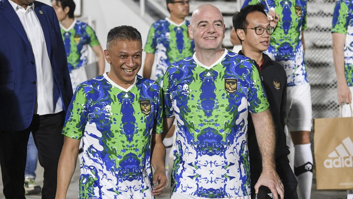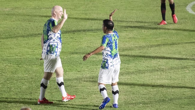Jakarta, Parlando Indonesia -- Presiden FIFA Gianni Infantino menyempatkan diri bermain sepak bola bersama PSSI dalam kunjungannya ke Indonesia, Selasa (18/10).