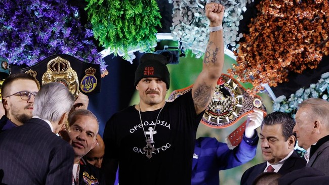 Face off Oleksandr Usyk vs Tyson Fury di Riyadh, Arab Saudi, dimulai saling menatap selama 11 menit berujung adu mulut, pada Jumat (20/12) waktu setempat.