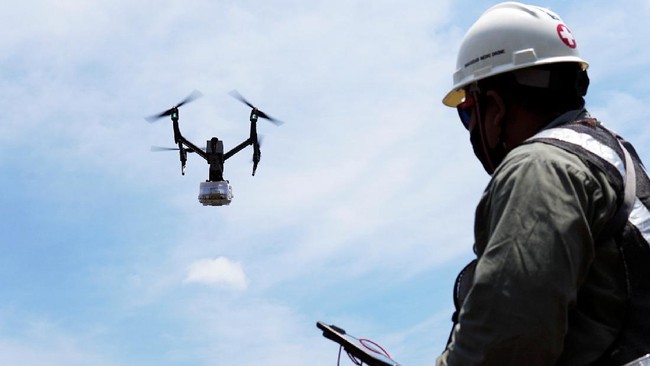 -- Kelompok pegiat drone di Makassar, Sulawesi Selatan menggunakan perangkat mereka membantu pasien Covid-19 yang melakukan isolasi mandiri.