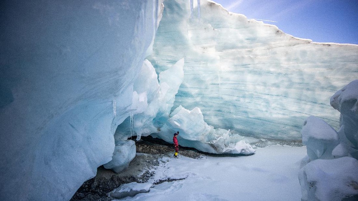 -- Gua es rakasa muncul di gletser Austria, bukti perubahan iklim makin cepat yang dari yang diperkirakan selama ini.