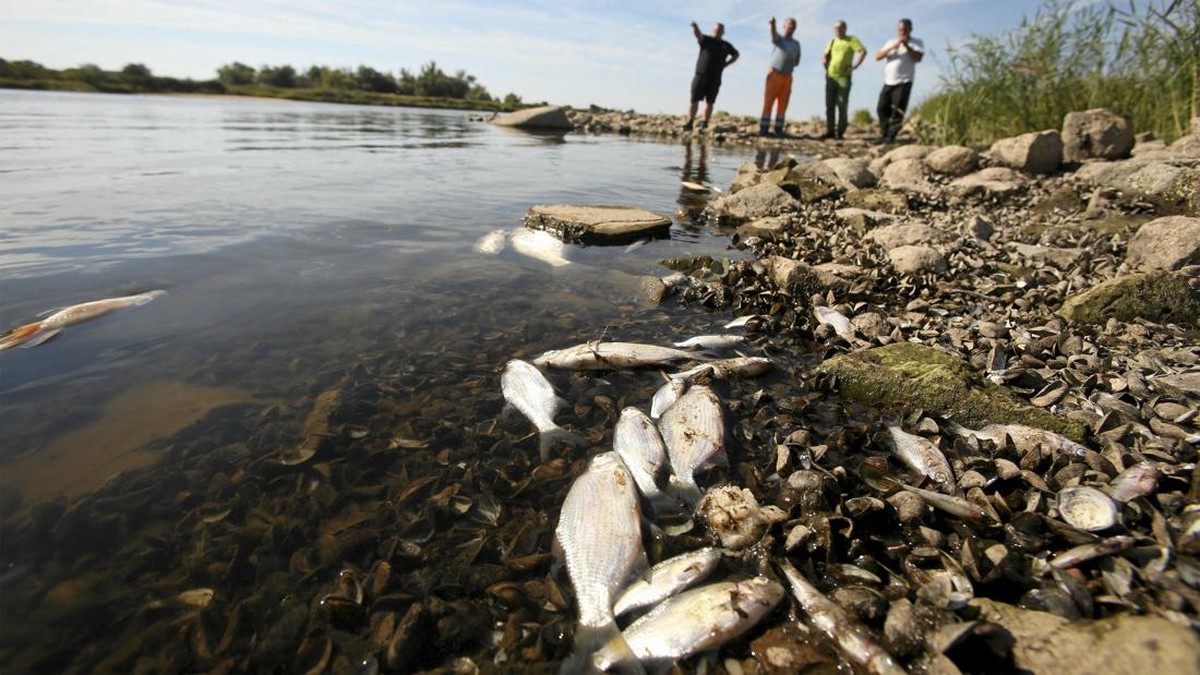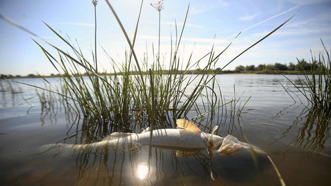 Ribuan ikan mati di sungai-sungai dan waduk Eropa akibat kekeringan yang diperparah pencemaran air dari limbah industri.