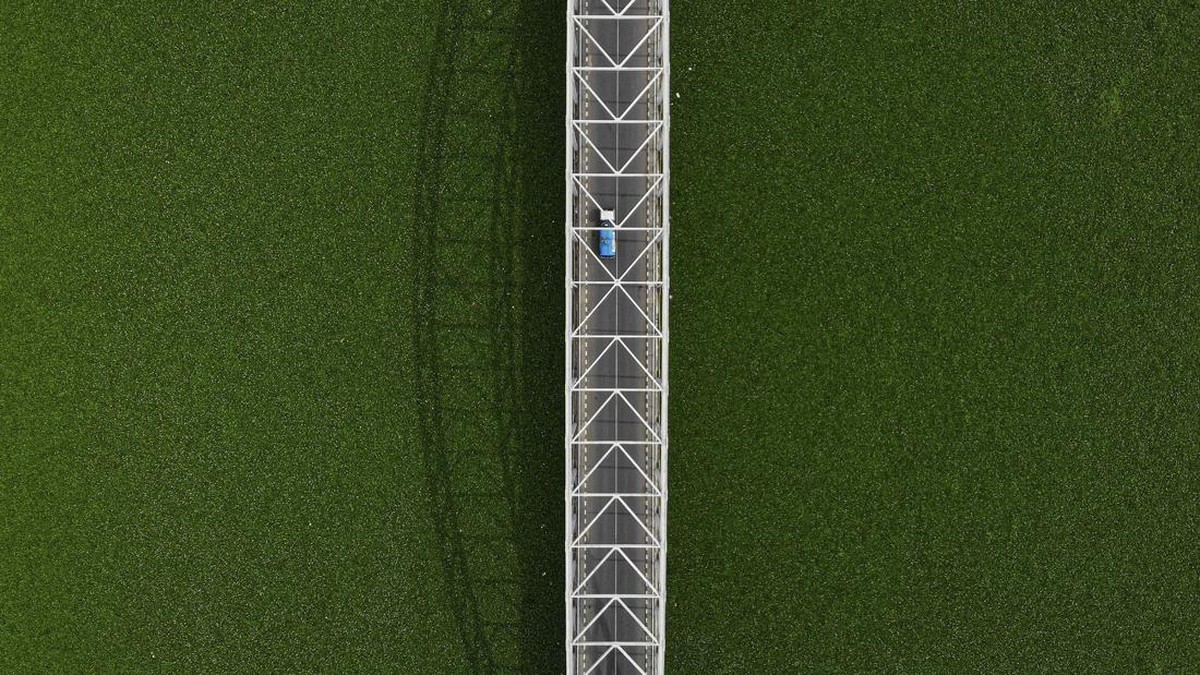 FOTO: Hamparan 'Permadani' Eceng Gondok di Sungai Bengawan Solo